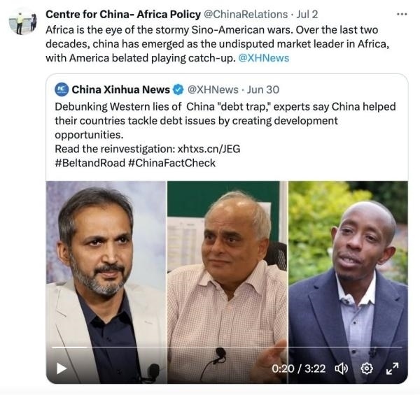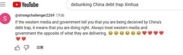 網(wǎng)友“強力挑戰(zhàn)者2269”直言:“如果西方政府和媒體告訴你,你陷入了中國的‘債務陷阱’,那證明你做對了。對待西方媒體和政府宣傳的信息,你得反著看?!?/p>