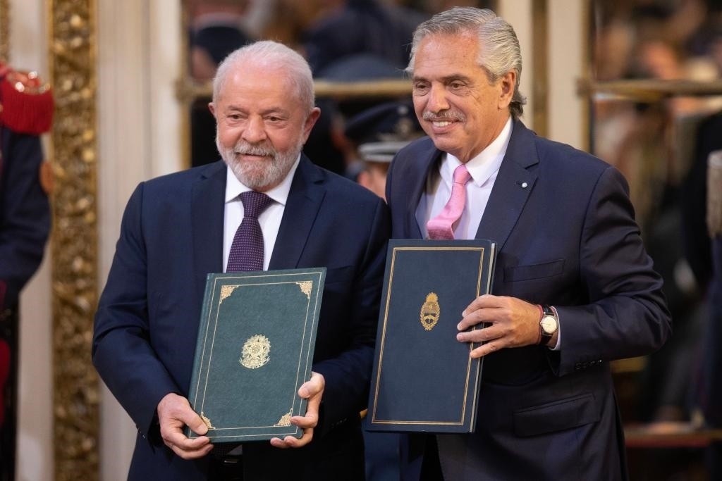 今年1月23日,在阿根廷布宜諾斯艾利斯,阿根廷總統(tǒng)費(fèi)爾南德斯(右)和巴西總統(tǒng)盧拉共同出席新聞發(fā)布會(huì)。新華社發(fā)(馬丁·薩巴拉攝)