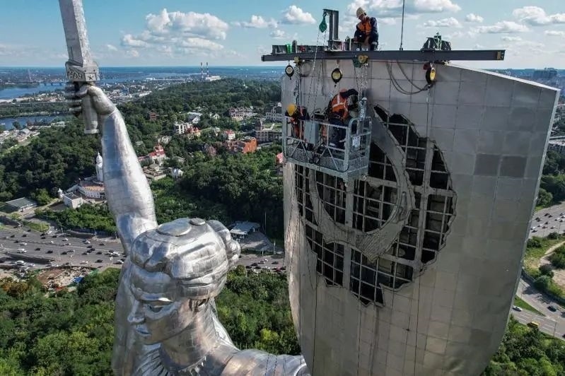 8月5日,用以替換烏克蘭首都基輔“祖國母親”雕像上的蘇聯(lián)國徽的配件運(yùn)抵基輔,在原蘇聯(lián)國徽的位置上的新標(biāo)志是烏克蘭國徽“三叉戟”。