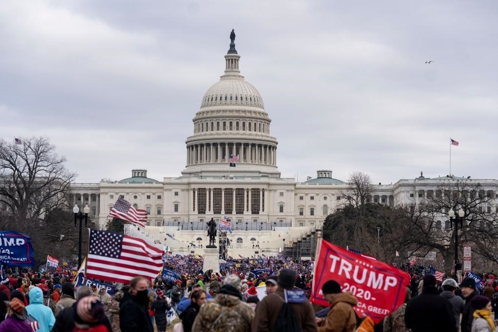 2021年1月6日,在美國首都華盛頓,時任總統(tǒng)特朗普的支持者在國會外舉行示威游行。部分示威者沖進(jìn)國會大廈,與警方發(fā)生沖突。新華社記者劉杰攝