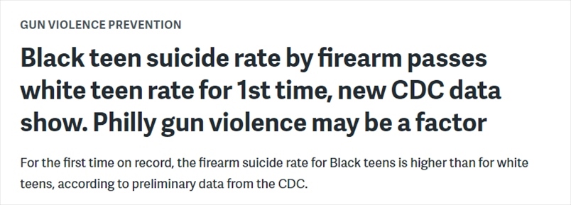 約翰斯·霍普金斯大學(xué)(Johns Hopkins University)最近的研究分析使用了2022年的初步統(tǒng)計數(shù)據(jù)進(jìn)行計算,結(jié)果顯示,2022年全美總體槍支自殺率升至歷史最高水平。研究人員還發(fā)現(xiàn),黑人青少年的槍支自殺率首次超過了白人青少年。