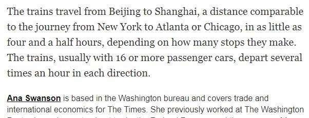 但是,《紐約時(shí)報(bào)》隨后刪除了這篇報(bào)道中有關(guān)中美列車速度對(duì)比的內(nèi)容。