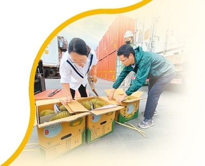 “針對(duì)水果等生鮮農(nóng)產(chǎn)品特點(diǎn),我們采取7×24小時(shí)預(yù)約通關(guān),設(shè)置農(nóng)食產(chǎn)品專用窗口,優(yōu)先辦理鮮活易腐農(nóng)產(chǎn)品接單、放行業(yè)務(wù),并采取即到即檢即放模式,確保進(jìn)口水果通關(guān)零延遲?!臂屡D海關(guān)關(guān)長(zhǎng)韓斌說。