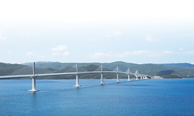 由中企承建的“一帶一路”項(xiàng)目克羅地亞佩列沙茨大橋。新華社記者 李學(xué)軍攝