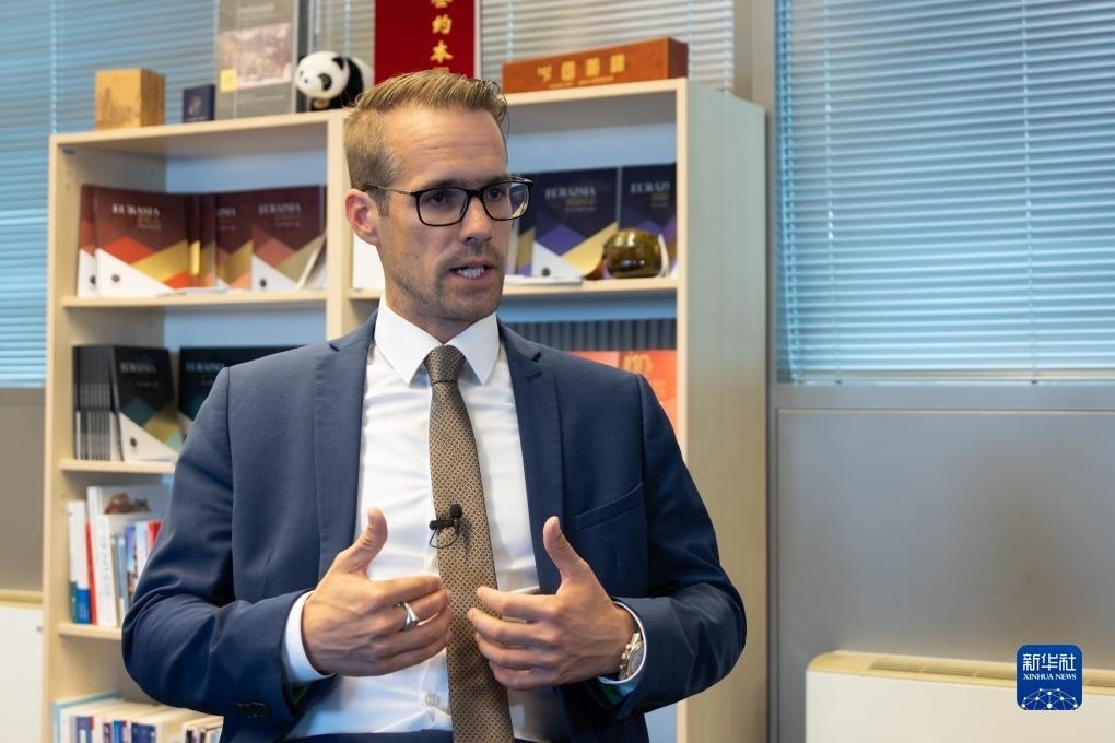 ?10月13日,匈牙利約翰·馮·諾伊曼大學歐亞中心主任霍爾瓦特·列文特在匈牙利布達佩斯接受新華社記者專訪。新華社發(fā)(弗爾季·奧蒂洛攝)