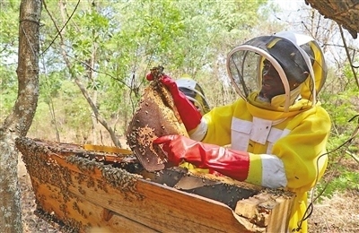 齊邦巴村如今已有500多戶農(nóng)戶加入蜂蜜合作項目。村里的蜂農(nóng)召集人貝納德告訴記者,一個蜂箱一年收蜜一次,每次能采出25至30公斤蜂蜜,10個蜂箱加起來可以帶來約5000贊比亞克瓦查(約合222.5美元)的收入?!爸袊袌龊艽?,與中方合作提高了村民的收入。”貝納德說。