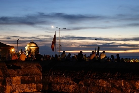 卡塔赫納古城墻西邊的圣多明各堡壘可憑海臨風(fēng),遠(yuǎn)眺城市風(fēng)光、欣賞海上落日。唐薇 攝