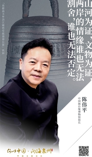 1月28日晚,由中央網(wǎng)信辦、國家文物局、人民日報社、福建省委網(wǎng)信委指導,中央網(wǎng)信辦網(wǎng)絡傳播局、國家文物局相關司局、福建省委網(wǎng)信辦、福建省文物局以及人民網(wǎng)等部門聯(lián)合主辦的“何以中國·向海泉州”網(wǎng)絡主題活動在泉州舉行?;顒蝇F(xiàn)場,作為講述嘉賓之一,中國閩臺緣博物館館長陳偉平分享了自己見證的閩臺緣、兩岸情。