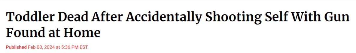 美國疾病控制與預防中心(CDC)的數(shù)據(jù)顯示,“意外傷害是造成美國0至17歲未成年人死亡的主要原因,而槍支是主要的傷害方式”,其中超半數(shù)的意外槍擊事件發(fā)生在家中。