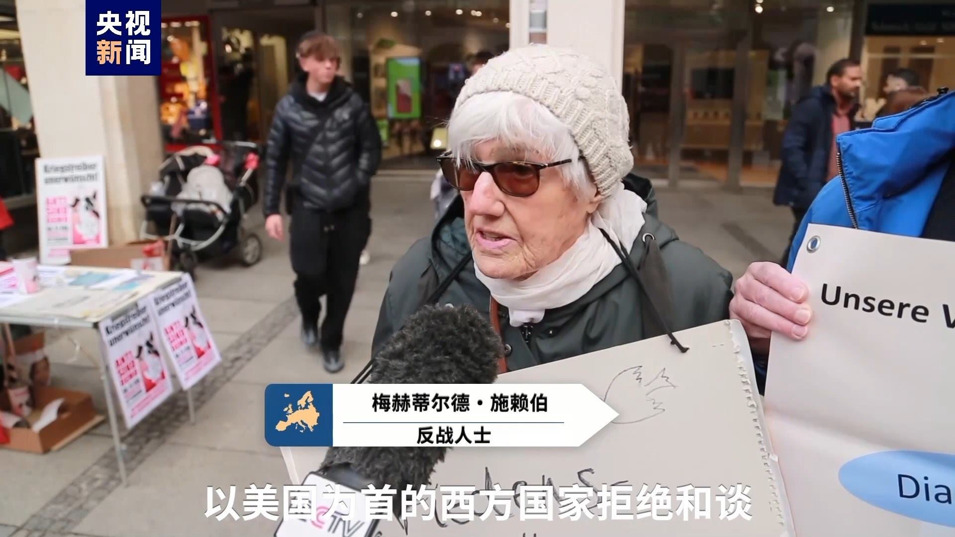 反戰(zhàn)人士 梅赫蒂爾德·施賴伯:以美國為首的西方國家拒絕和談。德國國防部長說,我們必須做好戰(zhàn)爭準備,運送武器并且提高武器生產(chǎn)能力。這非??膳?。
