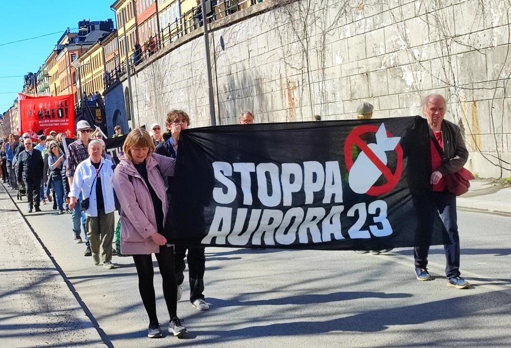 2023年4月22日,人們?cè)谌鸬渌沟赂鐮柲⒓涌棺h活動(dòng)。瑞典全國(guó)近20個(gè)城市當(dāng)日舉行活動(dòng),抗議在瑞典舉行大規(guī)模國(guó)際軍事演習(xí)、反對(duì)瑞典加入北約。新華社發(fā)(帕特里克·埃克斯特蘭德攝)