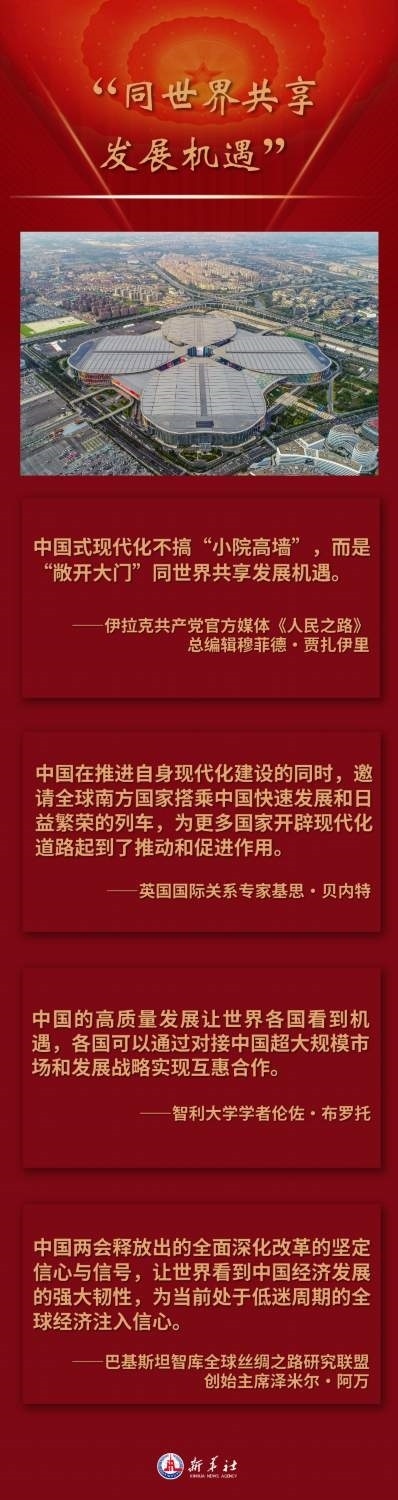 如何推動(dòng)中國式現(xiàn)代化建設(shè),是國際社會(huì)長期關(guān)注中國的一大焦點(diǎn)。透過中國全國兩會(huì)窗口,國際輿論和海外人士看到,在中國式現(xiàn)代化的道路指引下,中國經(jīng)濟(jì)社會(huì)發(fā)展取得令人矚目的成績,給世界各國帶來合作共贏的新機(jī)遇,中國式現(xiàn)代化為人類實(shí)現(xiàn)現(xiàn)代化提供了新選擇,為發(fā)展中國家拓展現(xiàn)代化路徑提供了有益啟示。