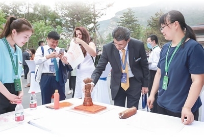 2023年7月3日,第三屆文明交流互鑒對(duì)話會(huì)暨首屆世界漢學(xué)家大會(huì)與會(huì)嘉賓體驗(yàn)非遺拓印技藝。劉馳攝