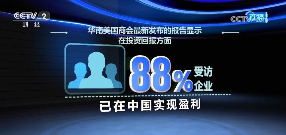 中國美國商會最新發(fā)布的調(diào)查報告顯示,有50%的受訪美國企業(yè)將中國列為全球首選或前三位投資目的地。華南美國商會的報告顯示,在投資回報方面,88%的受訪企業(yè)表示已在中國實現(xiàn)盈利,有超過50%的受訪企業(yè)認為其在華總體投資回報率高于全球總體投資回報率。