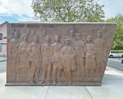 位于法國蒙達(dá)爾紀(jì)“鄧小平廣場(chǎng)”上的百年豐碑雕塑。本報(bào)記者 劉玲玲攝