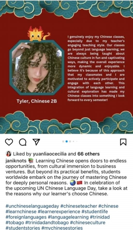 另外,在互聯(lián)網(wǎng)的浸潤下成長起來的海外“Z世代”也對中文和中國文化熱情洋溢。阿富汗的中文學(xué)習(xí)者Sediqi Khawaja Abdul Nasir認(rèn)為,“中文的學(xué)習(xí)不僅僅是掌握詞匯和語法,更是理解一個(gè)國家和一個(gè)民族的心靈?!碧亓⒛徇_(dá)和多巴哥的Janine Lutchman從中文學(xué)習(xí)者成長為本土教師,分享著她感染學(xué)生學(xué)習(xí)中文的點(diǎn)滴故事。此外,緬甸籍學(xué)生黃俊杰Thet Paing Phyo、土耳其籍中文學(xué)習(xí)者王愛英Ayperi ztürk和加納籍中文學(xué)習(xí)者王富健Richmond Ayawuli、格林納達(dá)的學(xué)生們等世界各地的青年,都在活動中為大家?guī)砬f萬動人的“中文故事”。