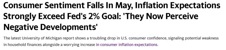 美國密歇根大學日前公布的數(shù)據(jù)顯示,由于通脹預期惡化,一項關鍵美國消費者信心指數(shù),跌至2023年11月以來的最低水平。
