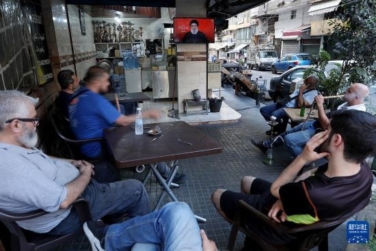9月19日,在黎巴嫩貝魯特,人們收看真主黨領(lǐng)導(dǎo)人納斯魯拉發(fā)表電視講話(huà)。新華社發(fā)(比拉爾·賈維希攝)