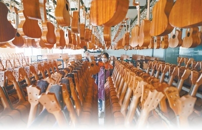 這是今年娜塔莎樂器公司發(fā)往日本客戶的第三批貨,大約300把?!懊堪鸭詈蟮馁|(zhì)檢流程需要20分鐘左右,我們要確保每一把吉他的質(zhì)量?!惫拘姓鞴茼f林飛說。2019年,受當(dāng)?shù)卣猩桃Y政策的吸引,娜塔莎樂器公司落戶貴州遵義市正安縣。如今,公司已建成一個頗有名氣的自主品牌。