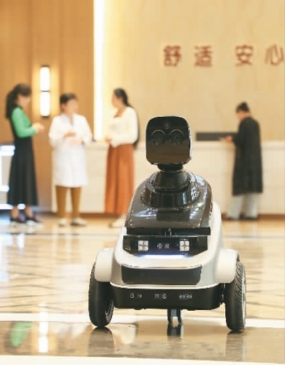 圖為在山東省東營(yíng)市東營(yíng)區(qū)德康寧醫(yī)養(yǎng)中心,智能機(jī)器人在巡檢。劉智峰攝(人民視覺(jué))