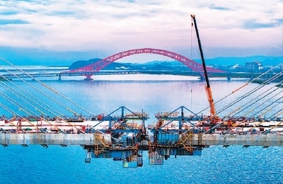 近日,浙江寧波舟山港六橫公路大橋一期項目梅山水道橋即將合龍。該大橋建成后,可實現(xiàn)六橫島、佛渡島、梅山島三島港區(qū)、產(chǎn)業(yè)聯(lián)動發(fā)展,推動甬舟一體化駛?cè)搿翱旌降馈薄:鷮W(xué)軍攝(人民視覺)
