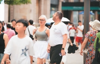 兩名外國游客在上海南京東路步行街游覽。翁奇羽攝(人民視覺)