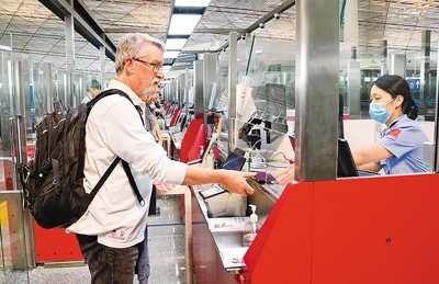 為了能讓外國旅客在入境第一站就體驗(yàn)到在中國旅游的便利,一系列免簽政策配套措施不斷創(chuàng)新完善——縮短候檢查驗(yàn)時(shí)間、自助填寫申報(bào)表、組建多語種志愿服務(wù)隊(duì)……各口岸邊檢部門傾力為出入境旅客提供優(yōu)質(zhì)、高效的通關(guān)服務(wù)。國際航線較多、外籍人員入境量較大的口岸均已開展口岸簽證業(yè)務(wù)。今年上半年,全國移民管理機(jī)構(gòu)簽發(fā)口岸簽證68.6萬證次,同比上升267.9%。