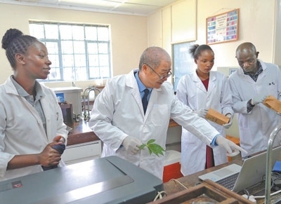 中肯作物分子生物學(xué)“一帶一路”聯(lián)合實(shí)驗(yàn)室成立于2016年,匯聚了中國(guó)和肯尼亞兩國(guó)農(nóng)技專家和人才,利用先進(jìn)的分子生物學(xué)技術(shù),進(jìn)行作物的抗性基因檢測(cè),篩選和培育更優(yōu)良的種子?!斑^去,肯尼亞運(yùn)用的農(nóng)業(yè)、園藝技術(shù)都來自歐洲,大農(nóng)場(chǎng)的經(jīng)理都是歐洲人;如今,在中國(guó)的幫助下,我們自己也掌握了技術(shù)?!笨夏醽嗈r(nóng)業(yè)專家理查德·穆盧瓦感嘆。