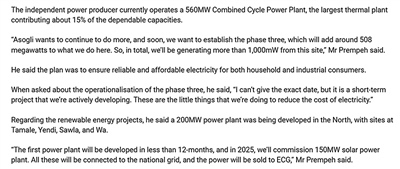 聯(lián)合采訪期間,人民日?qǐng)?bào)和加納通訊社、加納廣播公司等加主流媒體共同采訪深能安所固電廠和中國(guó)港灣工程有限責(zé)任公司承建的特馬新集裝箱碼頭等中加互利共贏合作項(xiàng)目,共同呈現(xiàn)中非合作豐碩成果,講好新時(shí)代中非合作故事。