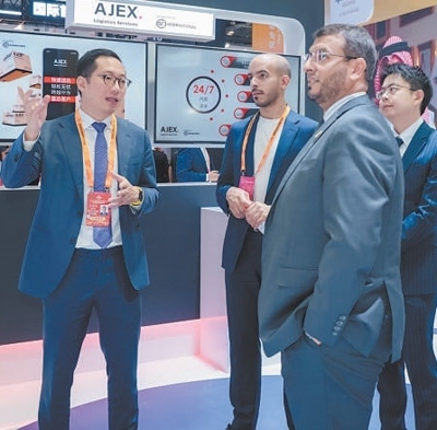 與中國金融科技公司共同助力中東北非地區(qū)數(shù)字金融基礎(chǔ)設(shè)施建設(shè),與中國綜合物流服務(wù)企業(yè)攜手提升沙特及中東北非地區(qū)快遞物流運輸水平……走進國家會議中心阿吉蘭兄弟控股集團140平方米的展臺,映入眼簾的是該集團與數(shù)十家中國龍頭企業(yè)合作的重要成果。