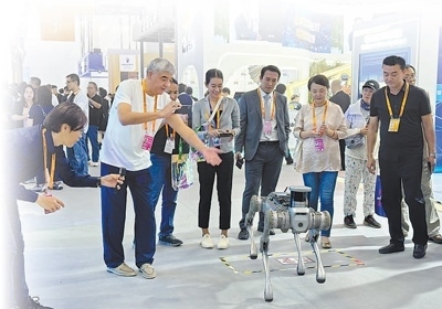 在服貿(mào)會現(xiàn)場,智能機器狗吸引很多關(guān)注。本報記者 劉玲玲攝