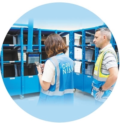 在菜鳥西班牙海外倉,兩名工作人員正在使用菜鳥自主研發(fā)的智能分揀柜系統(tǒng)進行包裹分揀。 本報西班牙分社 大衛(wèi)·阿瑪爾攝