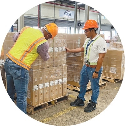 “海運+海外倉”是中遠海運探索出的“一站式”全程綜合物流服務(wù)模式,集海運、倉儲、報關(guān)等服務(wù)于一體。圖為在巴拿馬科隆自由貿(mào)易區(qū)內(nèi)的中遠海運海外倉,工作人員對抵達的貨物進行質(zhì)檢。卡洛斯·班迪尼攝