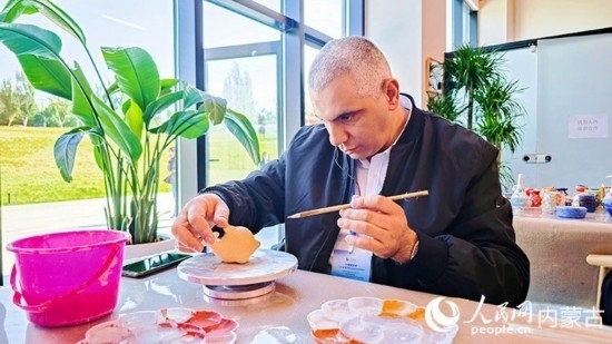 “今天是第一次體驗?zāi)嗨?,在老師的幫助下我們做了一個碗,我覺得很有意思,我會把它帶回家鄉(xiāng),展示給我的朋友們?!卑<坝浾唏R贊·伊斯蘭姆完成了自己的第一個泥塑作品,成就感滿滿。呼和浩特雕塑藝術(shù)館的體驗之旅也給他留下了深刻的印象,“呼和浩特有著豐富的歷史文化,很高興能有機會體驗了解,我認為這可以吸引很多游客來這里游覽。我們國家也有著豐富的歷史文化,我們兩國有很多共同點,我覺得文化交流能推動我們的合作關(guān)系邁向新的階段?!?/p>