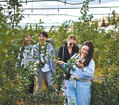 采礦不見礦,黃土披綠裝。礦山復墾區(qū)的千畝林果示范園里,一片郁郁蔥蔥的果園映入眼簾,蘋果、李子、梨、杏等果樹枝葉繁茂,果實累累。品嘗著甘甜的果實,北京石油化工學院烏茲別克斯坦留學生阿扎馬特豎起了大拇指,并用標準的中文稱贊道:“滿分!”