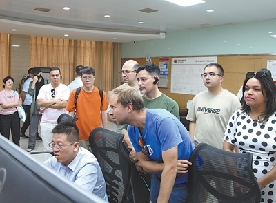 國際青年代表在玉門風電場中控室參觀。圖為本報記者趙帥杰攝