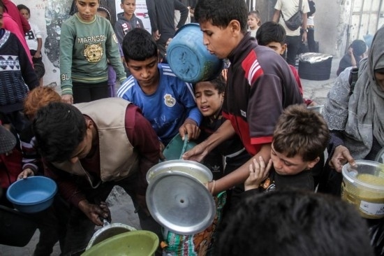 10月23日,人們在加沙地帶北部的加沙城領取救濟食品。新華社發(fā)(馬哈茂德·扎基攝)