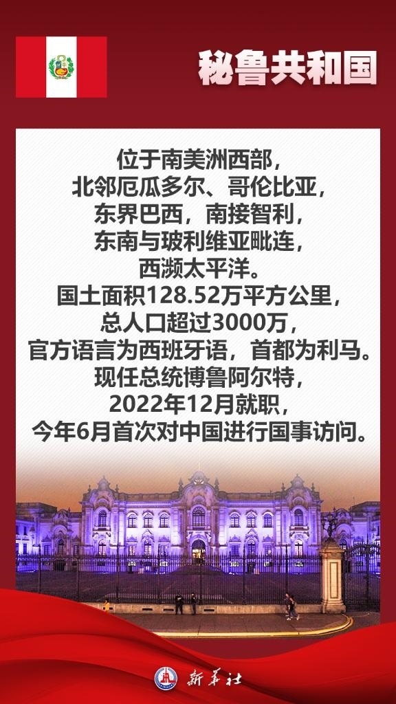 應秘魯共和國總統(tǒng)博魯阿爾特邀請,國家主席習近平將于11月13日至17日赴利馬出席亞太經合組織第三十一次領導人非正式會議并對秘魯進行國事訪問。秘魯位于南美洲西部,是印加文明發(fā)祥地,也是最早同新中國建交的拉美國家之一。關于秘魯,七張海報帶你了解更多——