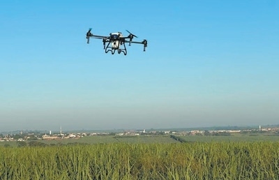 這里是圣保羅州最大的甘蔗合作社之一。今年,這家合作社的田間管理方式與往年大不相同——一架無人機緩緩飛行到甘蔗地上方,進行農(nóng)藥噴灑作業(yè)。