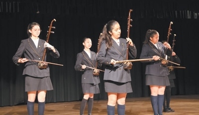 秘中學(xué)校的學(xué)生進(jìn)行二胡演奏。本報(bào)記者 顏 歡攝