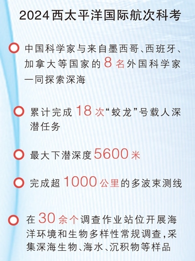 2024西太平洋國際航次科考由自然資源部中國大洋事務(wù)管理局統(tǒng)籌國家深?;毓芾碇行慕M織實施,是“數(shù)字化深海典型生境”大科學(xué)計劃下,首個在公海區(qū)域開展的聯(lián)合科考,也是首次有外國科學(xué)家搭乘“蛟龍”號開展深海科考。