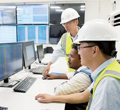 工作人員在阿爾舒巴赫光伏電站項目中央控制室查看設備運行情況。