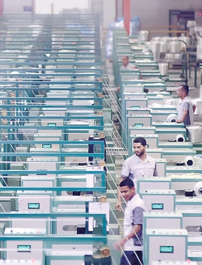 工作人員在巨石埃及玻璃纖維生產(chǎn)基地絡紗車間操作設備。
