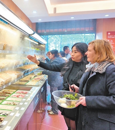 在柏林市中心,一家新開不久的“楊國福麻辣燙”店門口,當(dāng)?shù)厝思{爾夫和幾個好友推門而入。店內(nèi)熱氣騰騰,空氣中彌漫著濃郁的骨湯香氣。在排隊取餐的人群中,不乏像納爾夫這樣的外國朋友。他們拿起夾子和菜盆,熟練地自選食材(見圖②,本報記者劉赫攝):藕片、菠菜、凍豆腐、寬粉、蝦和牛肉卷……幾分鐘后,一碗香氣四溢的麻辣燙被端上餐桌。