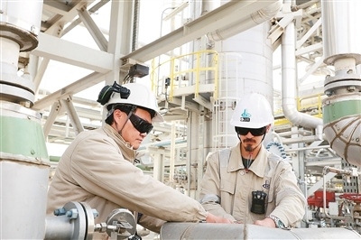伊拉克哈法亞天然氣處理廠項(xiàng)目由中國(guó)石油工程建設(shè)有限公司承建,主要功能是收集和處理哈法亞油田3個(gè)中心油氣處理廠的伴生氣和凝析液,有效減少該地區(qū)油田伴生氣放空燃燒,從而保護(hù)環(huán)境。圖為中方技術(shù)人員帶領(lǐng)當(dāng)?shù)貑T工對(duì)現(xiàn)場(chǎng)調(diào)節(jié)閥進(jìn)行檢測(cè)。