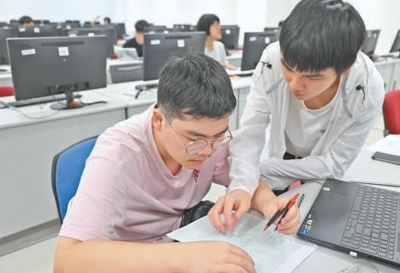 廈門(mén)大學(xué)馬來(lái)西亞分校能源與化工學(xué)院工程制圖課上,兩名學(xué)生在討論作業(yè)。