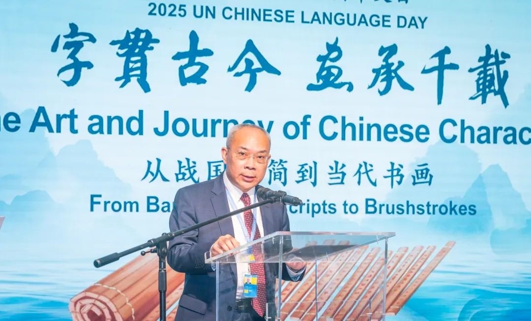 此次中文日活動以“字貫古今 畫承千載——從戰(zhàn)國竹簡到當代書畫”為主題,由中國常駐維也納代表團、聯(lián)合國維也納辦事處主辦,中央數(shù)字電視書畫頻道、清華大學、安徽大學、吉林大學協(xié)辦,共同為維也納聯(lián)合國總部獻上了一場中國文化盛宴。清華大學副校長彭剛、中央數(shù)字電視書畫頻道董事局主席王平在開幕式致辭,探討了文字、文化、文明三者之間的緊密關(guān)系和文明交流互鑒的重要意義。