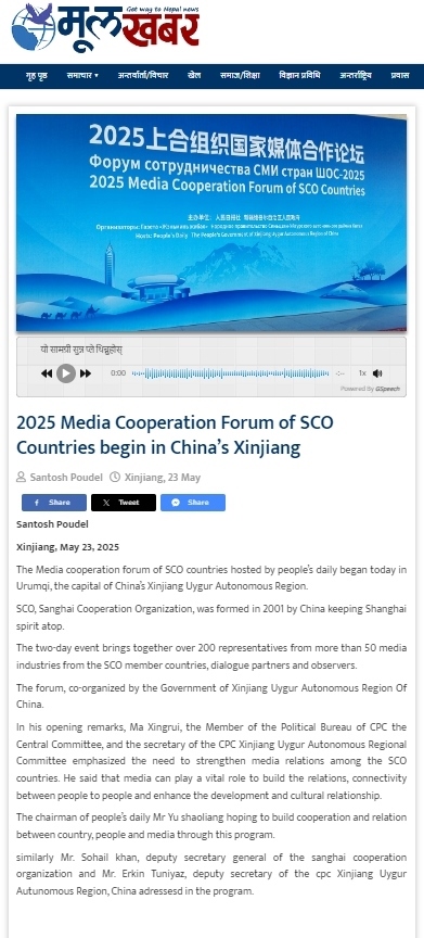 尼泊爾穆?tīng)柨ò蜖栃侣劸W(wǎng)報(bào)道2025上合組織國(guó)家媒體合作論壇