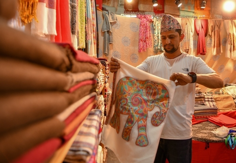 2025年6月18日,在第9屆中國(guó)—南亞博覽會(huì),來(lái)自尼泊爾的參展商整理即將展出的商品。新華社發(fā)(彭奕凱 攝)