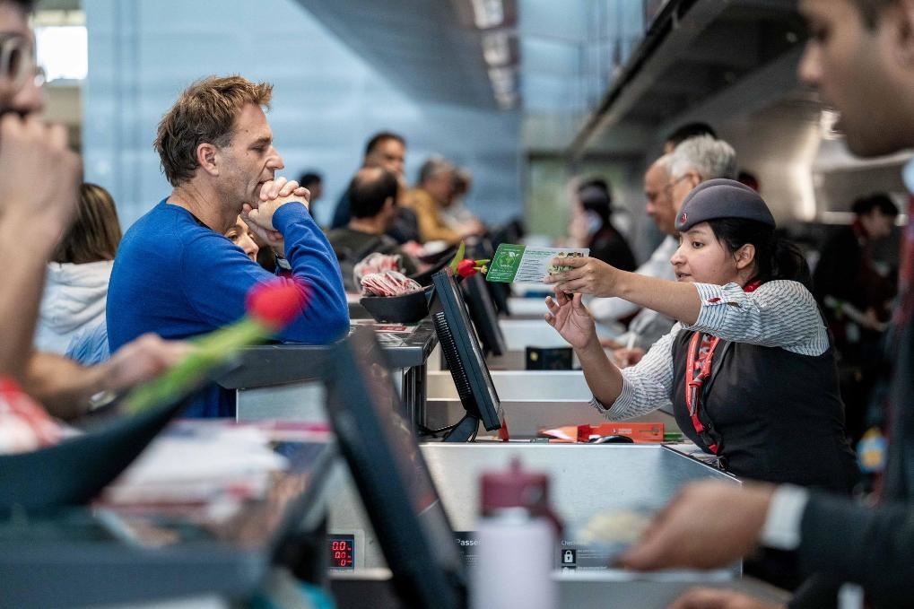 12月20日,旅客在美國(guó)舊金山國(guó)際機(jī)場(chǎng)辦理值機(jī)手續(xù)。新華社發(fā)(朱子于攝)